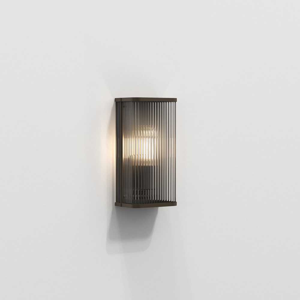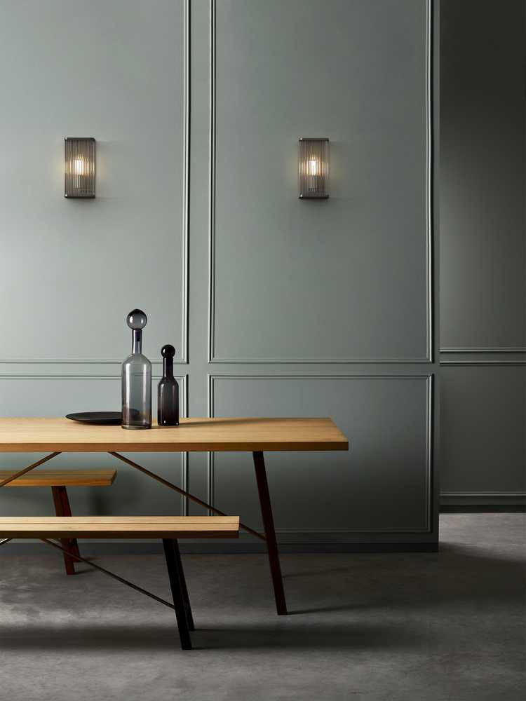 Inspired by Art Deco fixtures, the Avignon Square 300 wall lamp is large-scale and lends immediate drama and presence to the space. Tall and slim, with a sharply defined profile, sparkling clear glass rods, die-cast bronze end caps, and emits ambient, glare-free lighting. The lamp designed for hospitality can be attached to the wall with a single discreet screw, so nothing distracts from the seamless appearance.