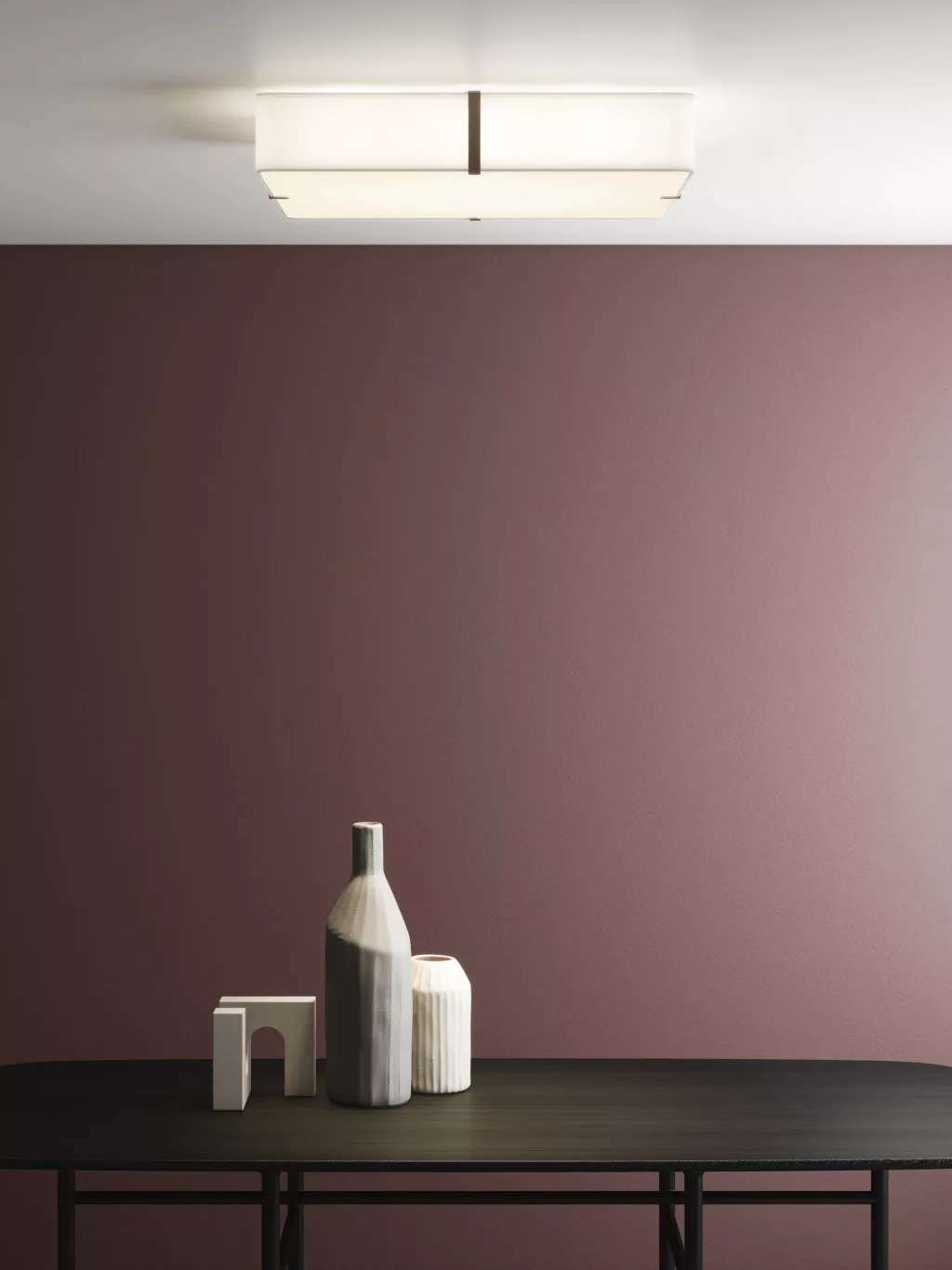 The shades that accompany the Elba ceiling bases, availabile in a range of shapes and sizes are attached using magnets, making installation quick and simple, with the added benefit that shade can be rotated in place for aligment with the room