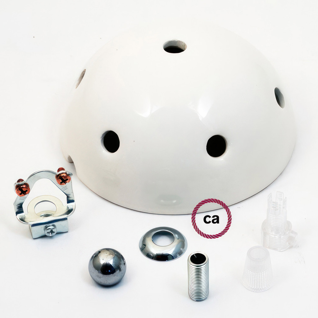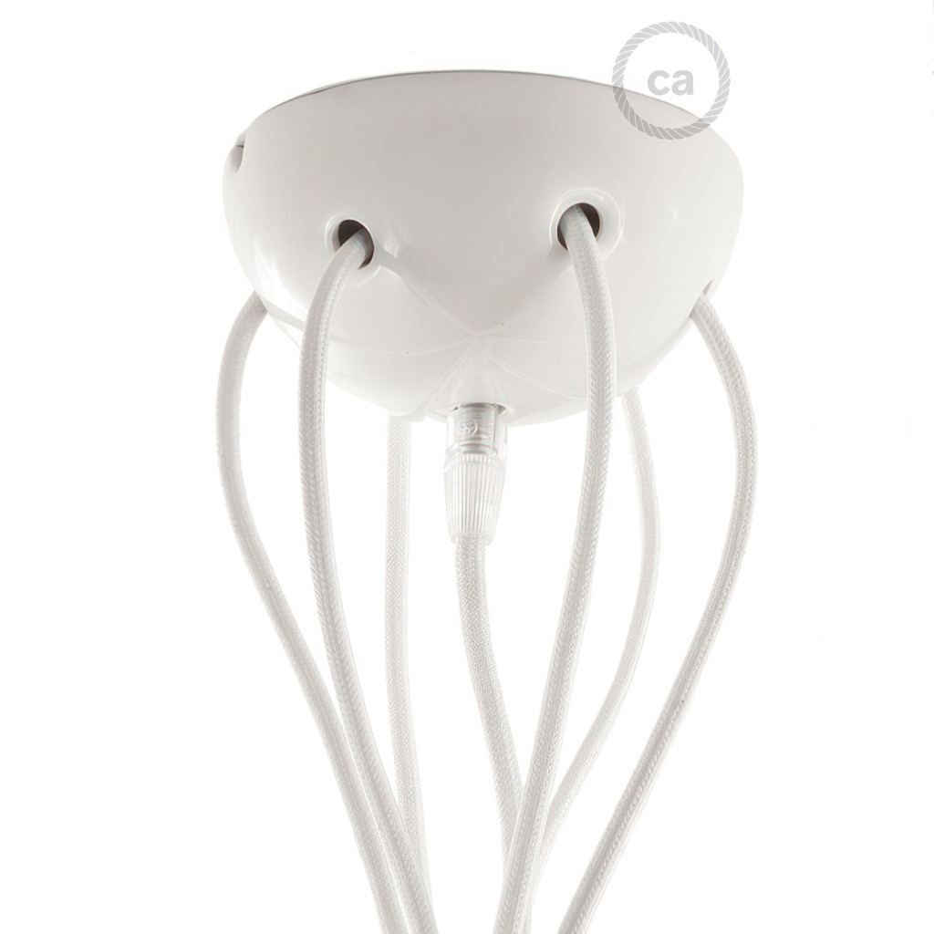 7-hole ceiling rose (6 outer and 1 center), ideal for creating multiple "drops" with textile cables and ceramic caps, available in the same design.