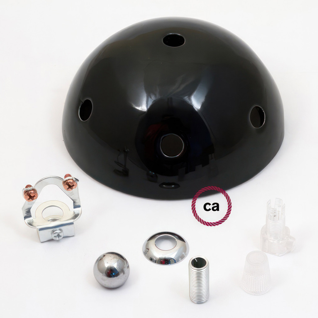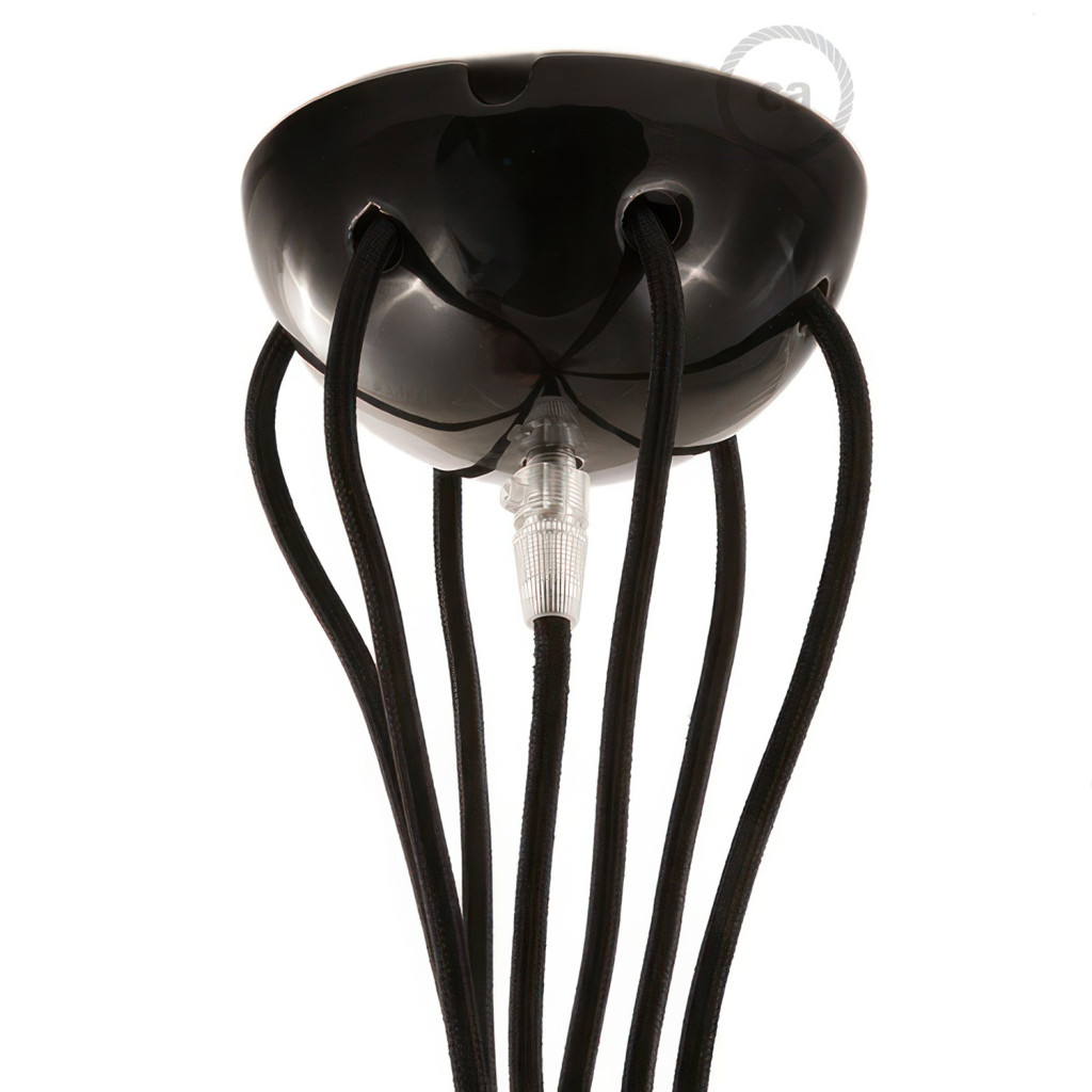7-hole ceiling rose (6 outer and 1 center), ideal for creating multiple "drops" with textile cables and ceramic caps, available in the same design.