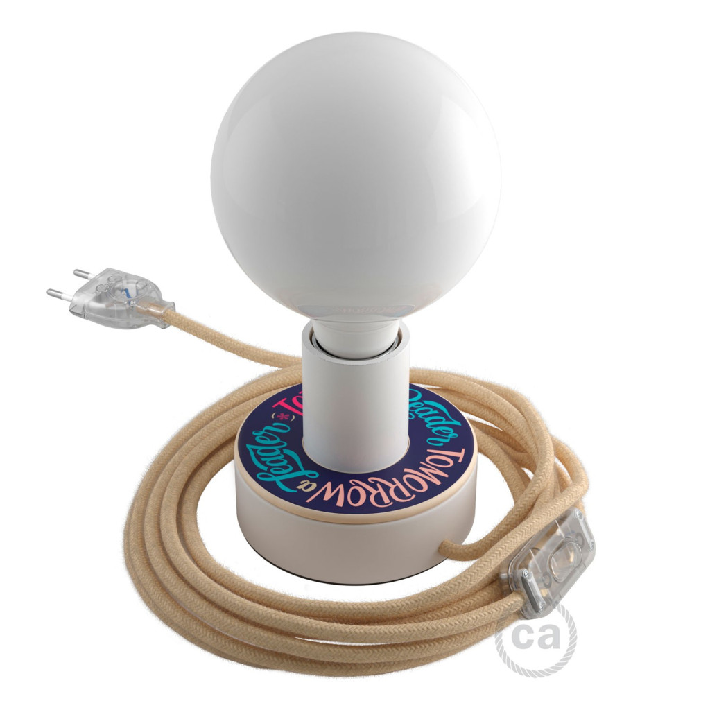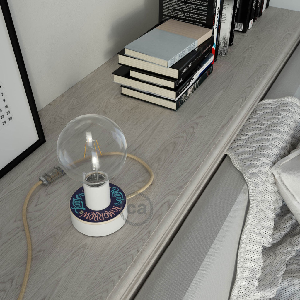 Personalized wooden Posaluce with MINI-UFO, ready-to-use table lamp