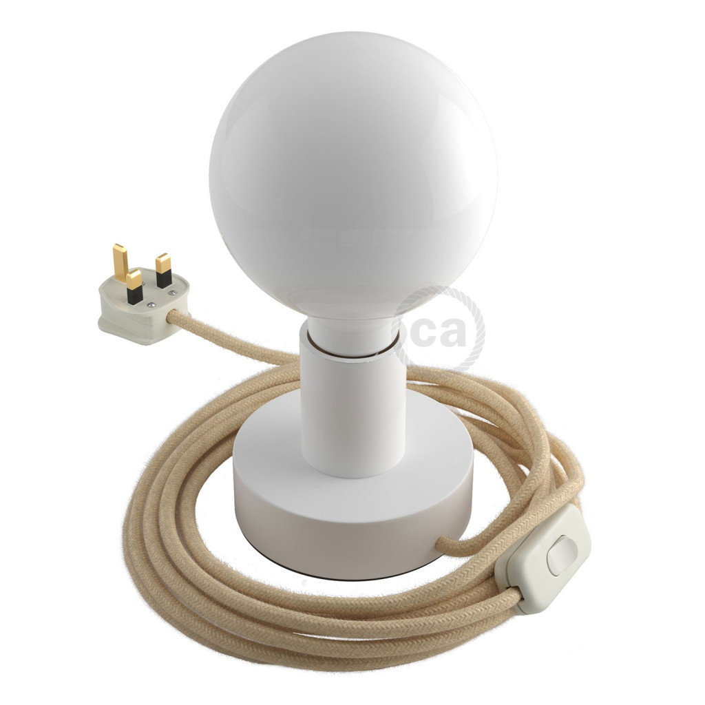 Creative-Cables fabric-covered round cable: 2 meters (150 cm from plug to switch + 50 cm from switch to Posaluce) 2 x 0.75, HAR certified. Made in Italy. Cable/surface combinations: RS83/Natural; RN06/White.