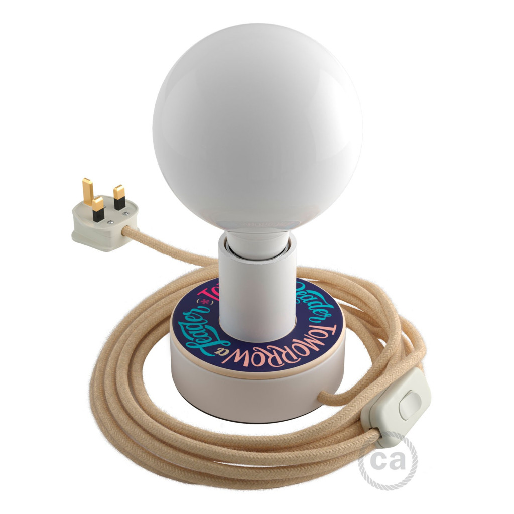 2 x 0.75 Creative-Cables round cable, jute-colored fabric cover, HAR certified, Italian-made, 2 meters long (150 cm from plug to switch + 50 cm from switch to Posaluce)