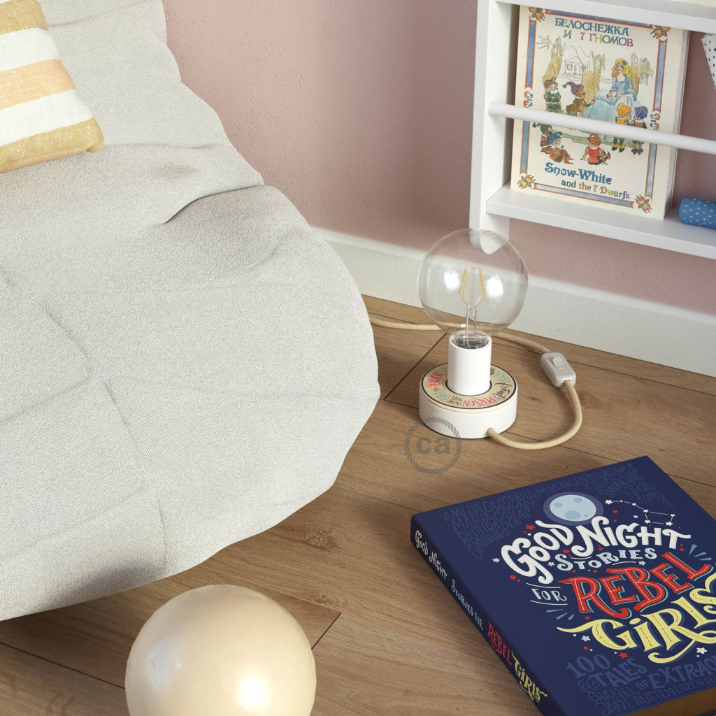Personalized wooden Posaluce with MINI-UFO, ready-to-use table lamp