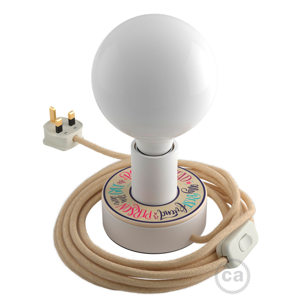 2 x 0.75 Creative-Cables round cable, jute-colored fabric cover, HAR certified, Italian-made, 2 meters long (150 cm from plug to switch + 50 cm from switch to Posaluce)