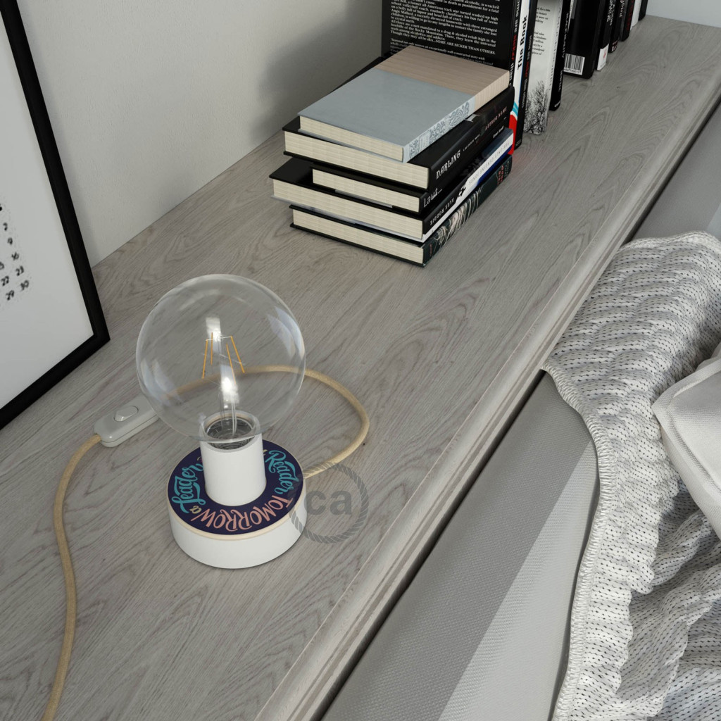 Personalized wooden Posaluce with MINI-UFO, ready-to-use table lamp