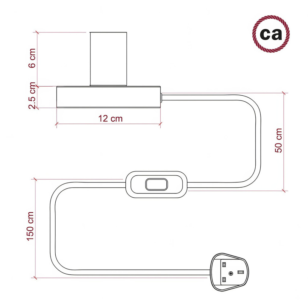 Round Creative-Cables cable with fabric cover: 2 meters (150 cm from socket to switch + 50 cm from switch to Posaluce) 2x0.75, HAR certified. Made in Italy