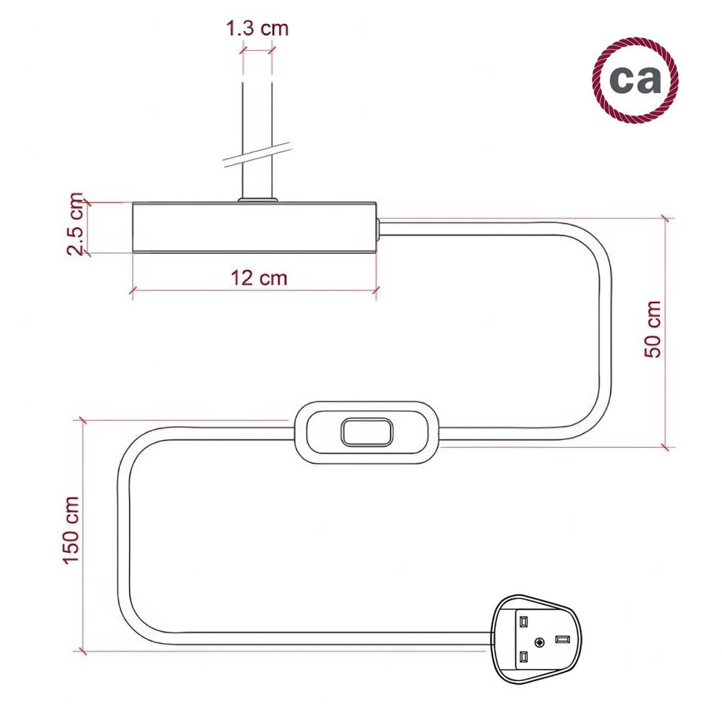 2 m Creative Cables cable (150 cm from plug to switch + 50 cm from switch to Alzaluce) 2x0.75, HAR certified. Made in Italy.