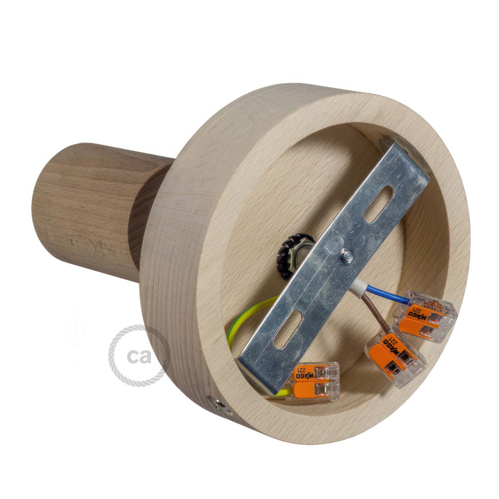 Fermaluce Wood 90°, natural wood covered lamp for wall or ceiling