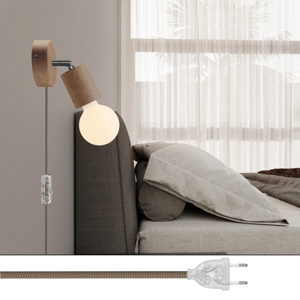 Fabric-covered cable: 210 cm (150 cm from plug to switch + 60 cm from switch to rosette) 2x0.75, made in Italy