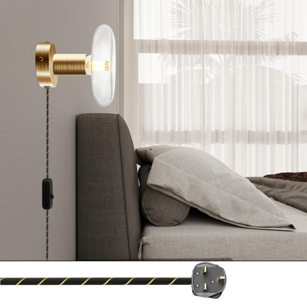 Fabric-covered cable: 210 cm (150 cm from the plug to the switch + 60 cm from the switch to the rosette) 2x0.75, made in Italy