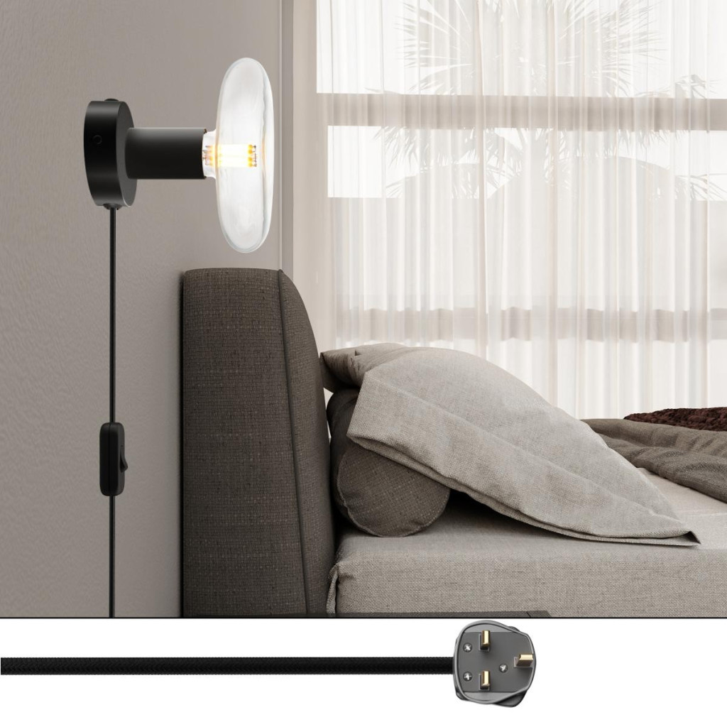Fabric-covered cable: 210 cm (150 cm from the plug to the switch + 60 cm from the switch to the rosette) 2x0.75, made in Italy