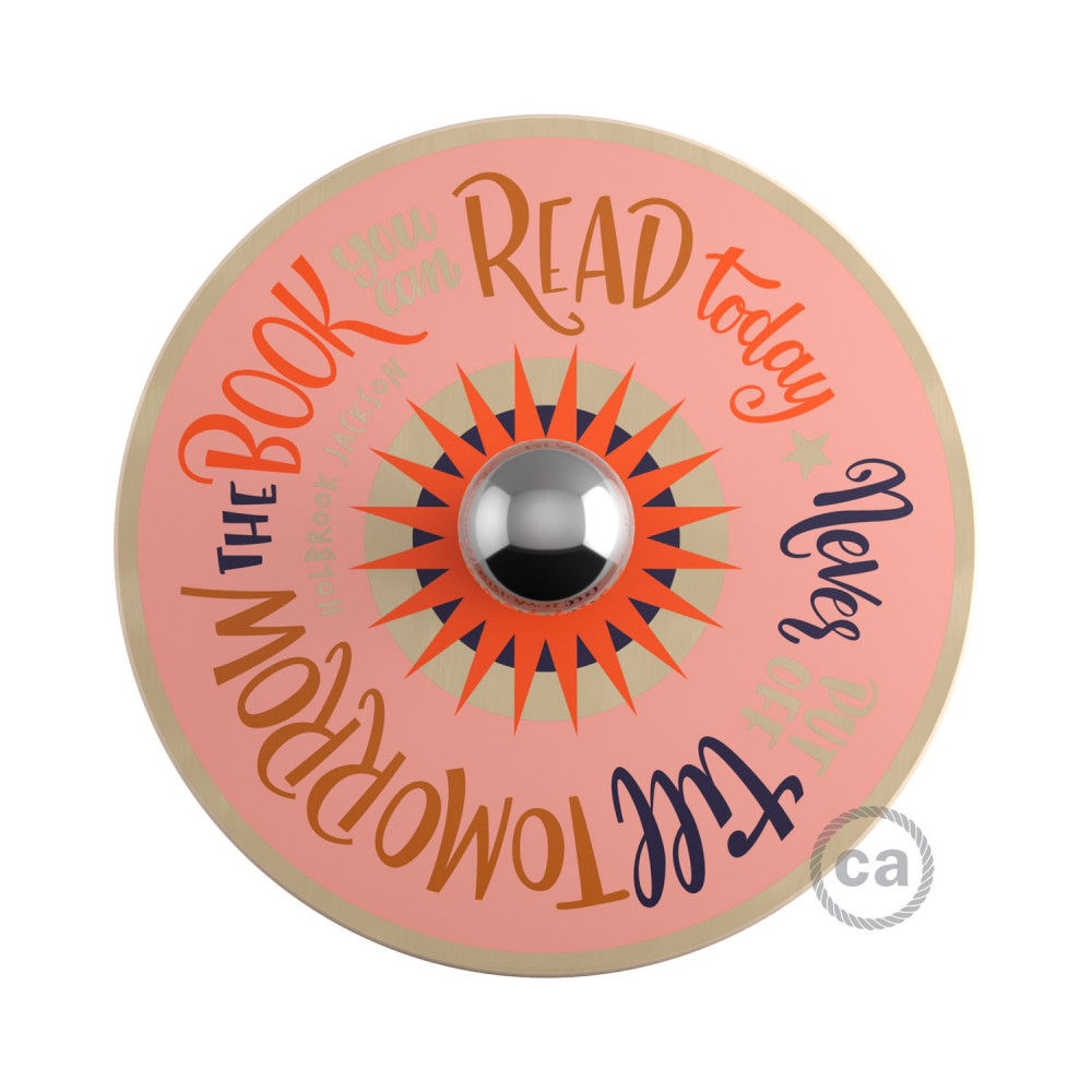 The UFO wall lamp with lampshade will appeal to literature enthusiasts and lovers of inspirational quotes. The disc features quotes from writers such as Jane Austen, Holbrook Jackson, Abraham Lincoln, Honoré de Balzac, Fernando Pessoa, Mary Alcott, and many others. This lamp, designed exclusively for Creative-Cables, reminds us of the importance of reading.