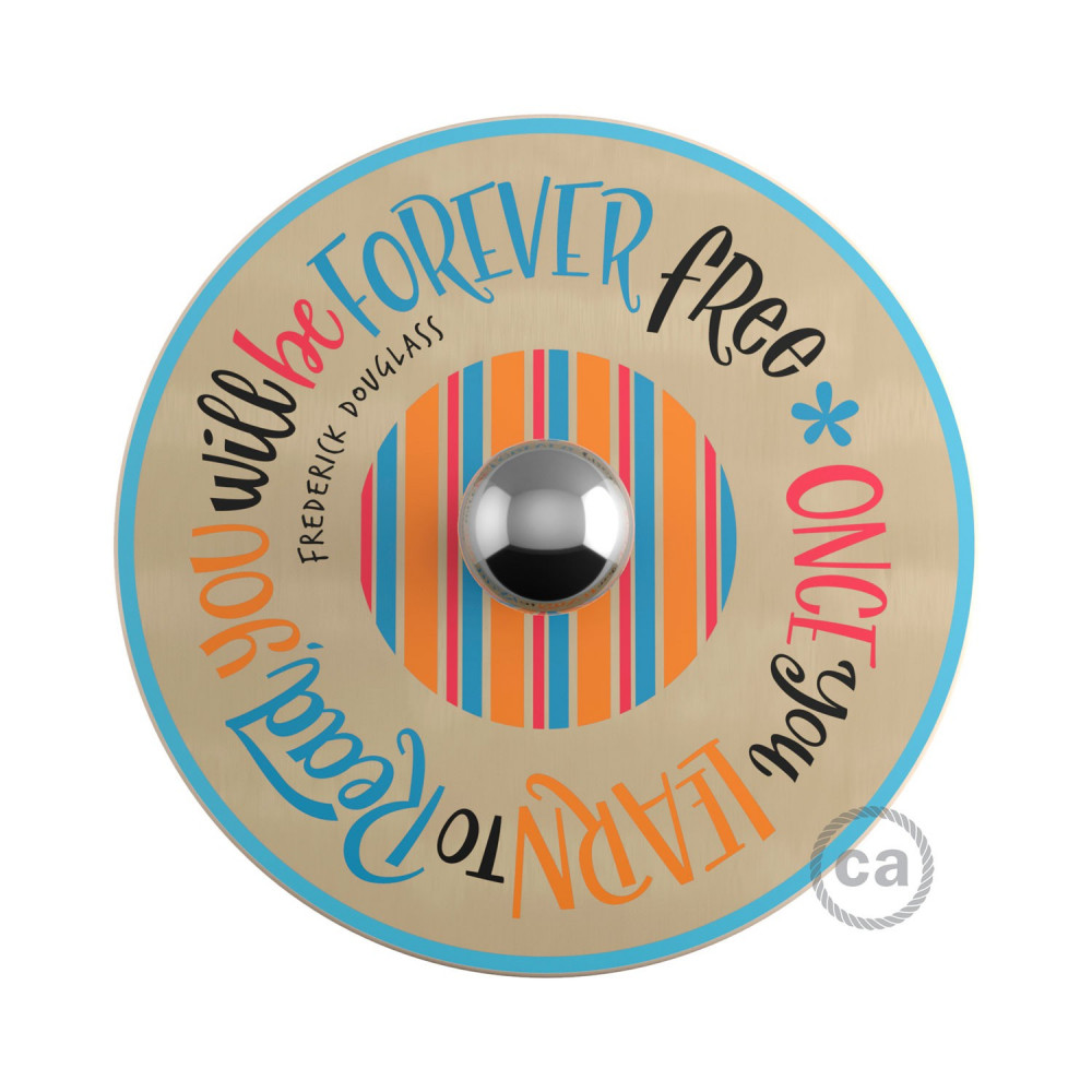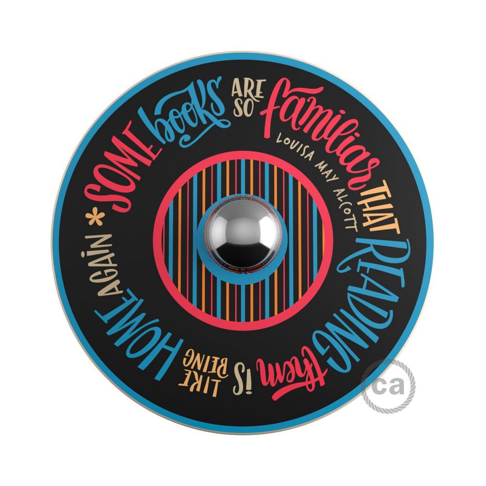 The UFO wall lamp with lampshade will appeal to literature enthusiasts and lovers of inspirational quotes. The disc features quotes from writers such as Jane Austen, Holbrook Jackson, Abraham Lincoln, Honoré de Balzac, Fernando Pessoa, Mary Alcott, and many others. This lamp, designed exclusively for Creative-Cables, reminds us of the importance of reading.
