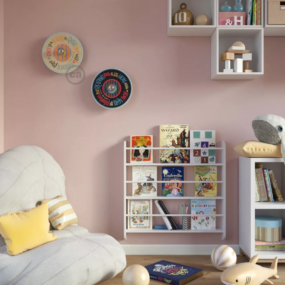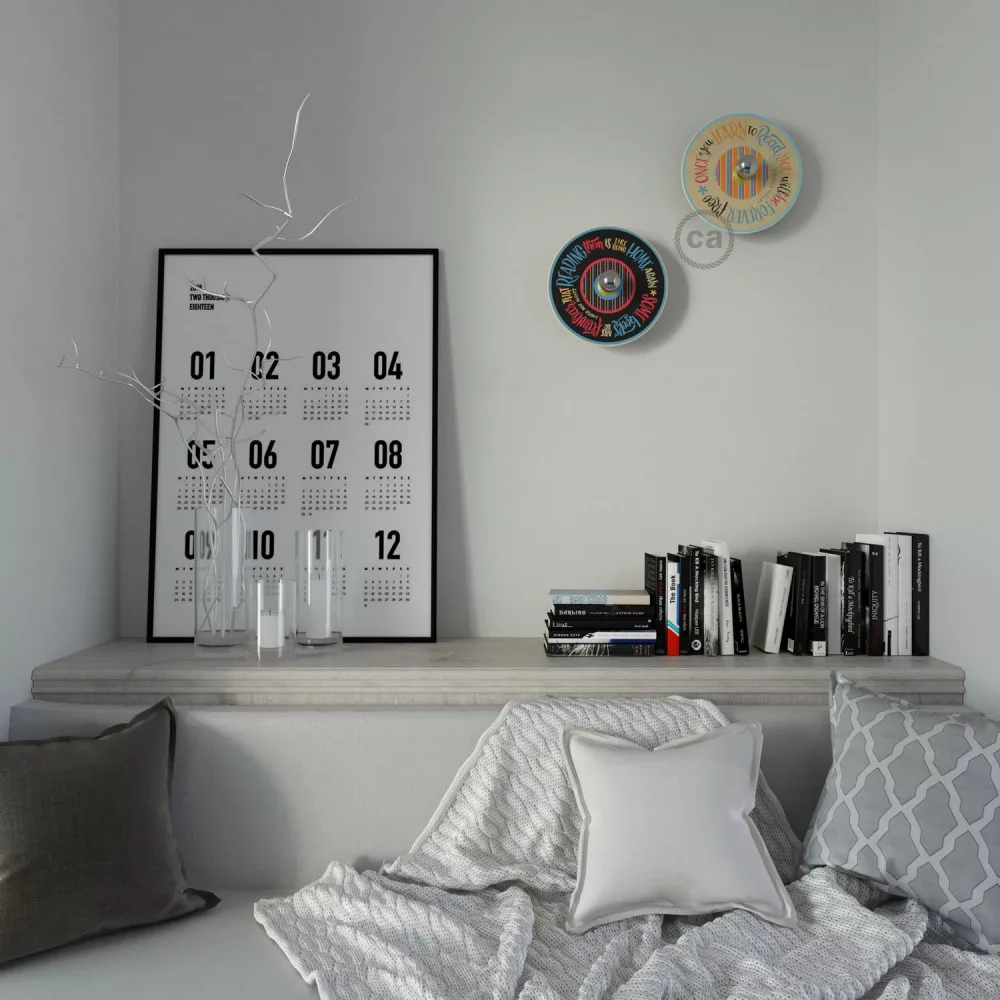 The UFO wall lamp with lampshade will appeal to literature enthusiasts and lovers of inspirational quotes. The disc features quotes from writers such as Jane Austen, Holbrook Jackson, Abraham Lincoln, Honoré de Balzac, Fernando Pessoa, Mary Alcott, and many others. This lamp, designed exclusively for Creative-Cables, reminds us of the importance of reading.