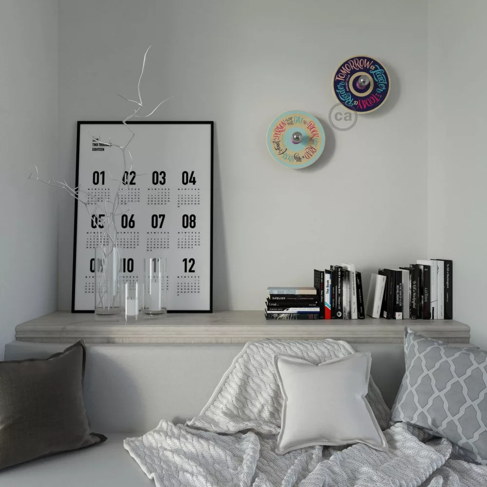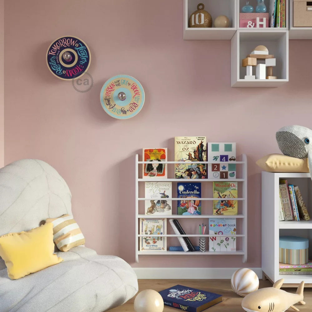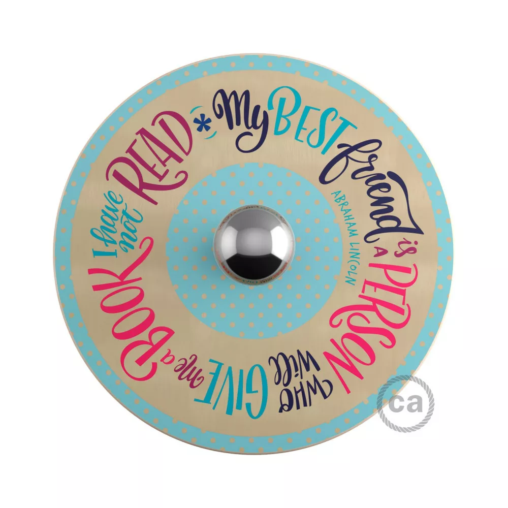 The UFO wall lamp with lampshade will appeal to literature enthusiasts and lovers of inspirational quotes. The disc features quotes from writers such as Jane Austen, Holbrook Jackson, Abraham Lincoln, Honoré de Balzac, Fernando Pessoa, Mary Alcott, and many others. This lamp, designed exclusively for Creative-Cables, reminds us of the importance of reading.