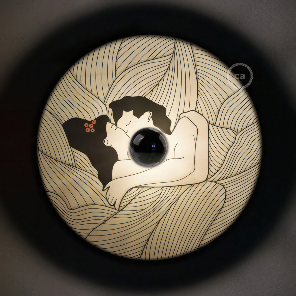 Fermaluce Romantic double-sided wooden UFO lampshade with illustrations by various artists