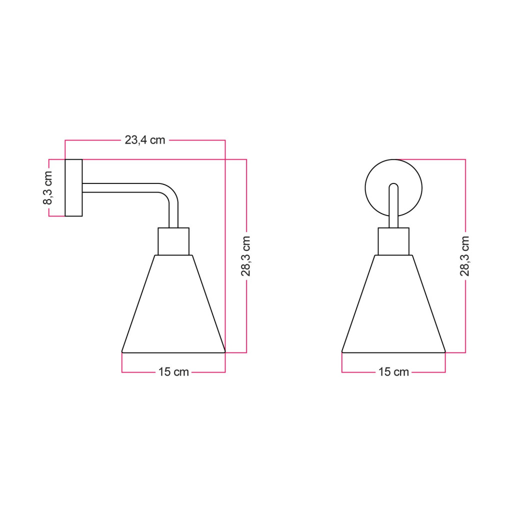 Dimensions: Lamp length: 23.4x28.3 cm Shade width: diameter 30 cm Shade height (without connector): 14.3 cm
