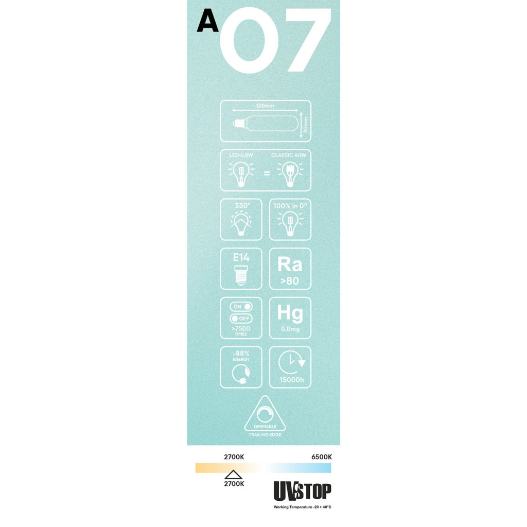 Please note: a special dimmer or a new generation universal dimmer is required to properly control the LED bulb. You can find various wall and infrared models in the dedicated section of our website.