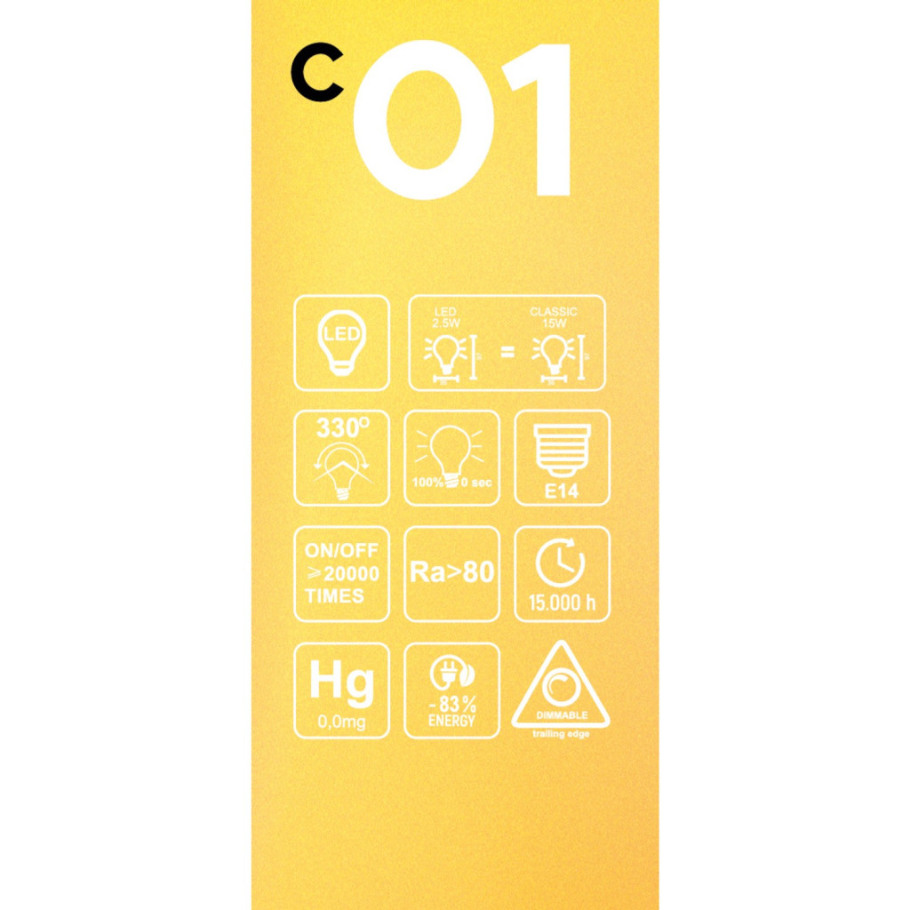LED gold filament bulb, carbon line, curved spiral filament candle C35 2.5 W 136 lm E14 1800 K, dimmable - C01