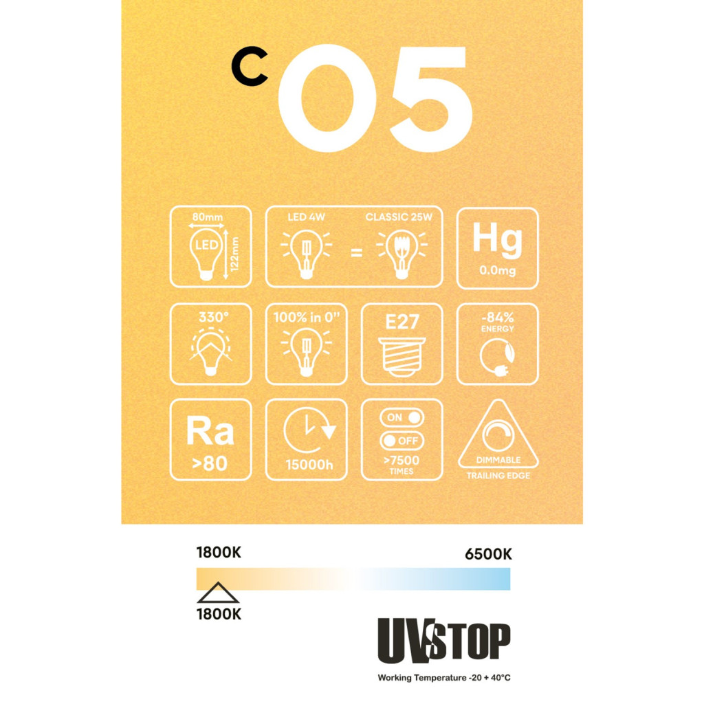 LED gold filament bulb Carbon Line curved spiral filament bulb sphere G80 4W 250Lm E27 1800K dimmable - C05