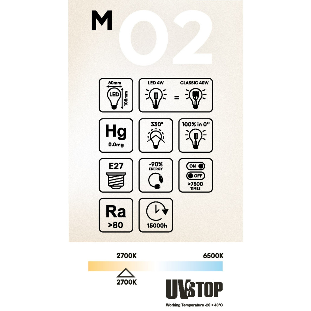 LED Milky Drop bulb A60 4W 470Lm E27 2700K - M02