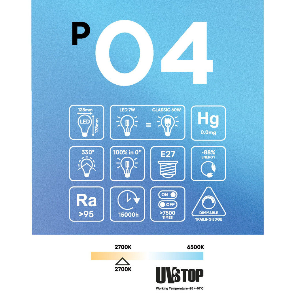 LED porcelain effect bulb CRI 95 G125 7W 640Lm E27 2700K Dimmable - P04