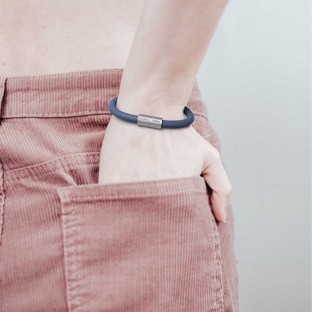 Ready-made bracelet made of RC30 textile cable and matte silver magnetic clasp.