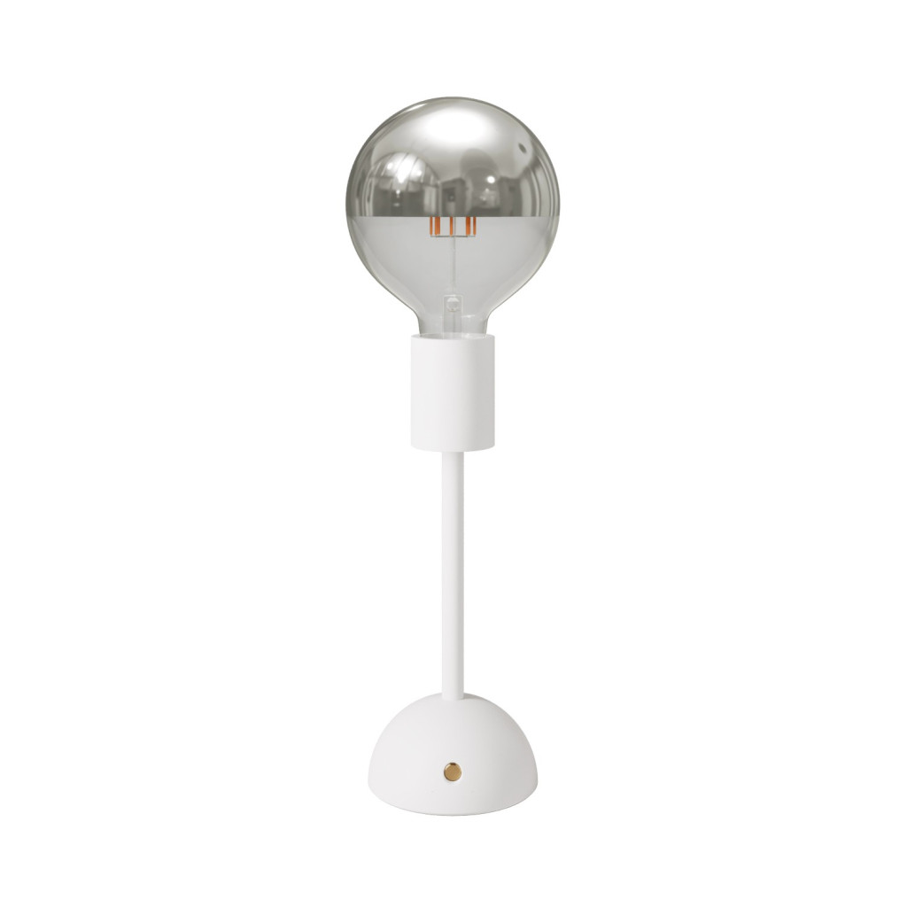 Portable and rechargeable Cabless02 lamp with silver hemispherical bulb