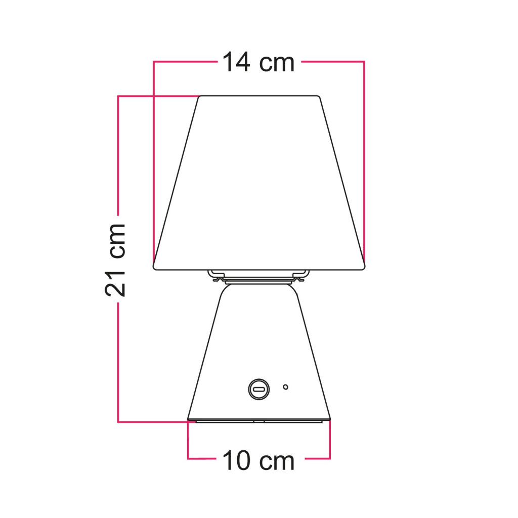 The portable and rechargeable LED Cabless11 lamp with lampshade consists of the following parts: