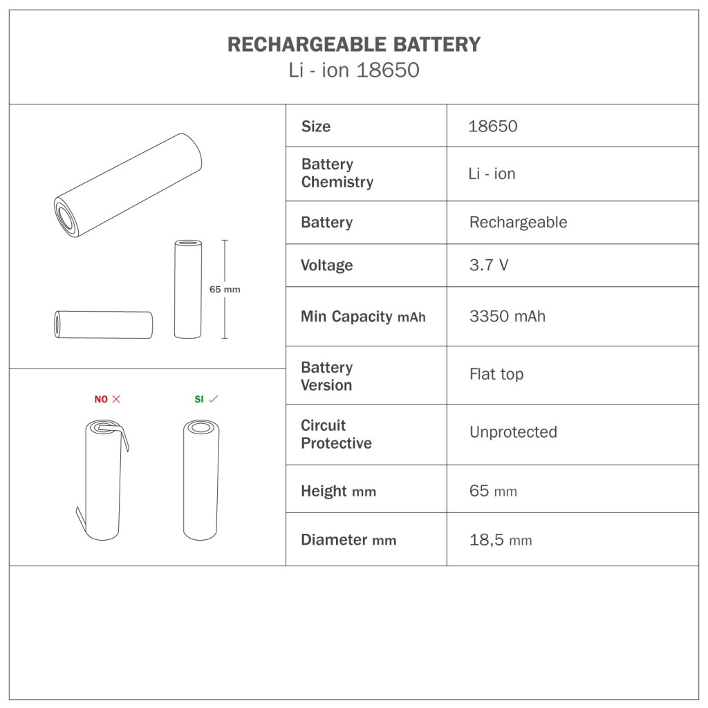 - Only works with 5V E27 bulb (included) and Li-ion 18650 battery (included)