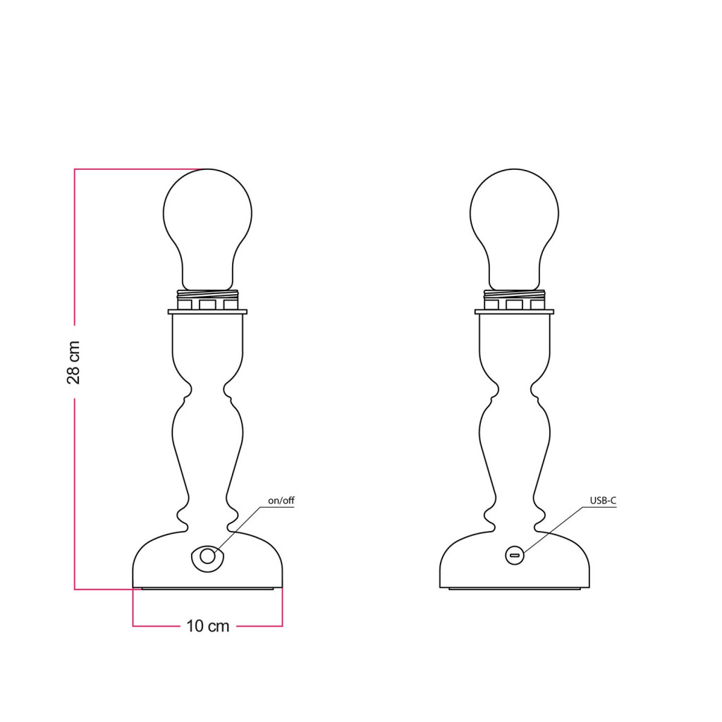 Portable and rechargeable Cabless14 lamp with teardrop-shaped bulb and lampshade