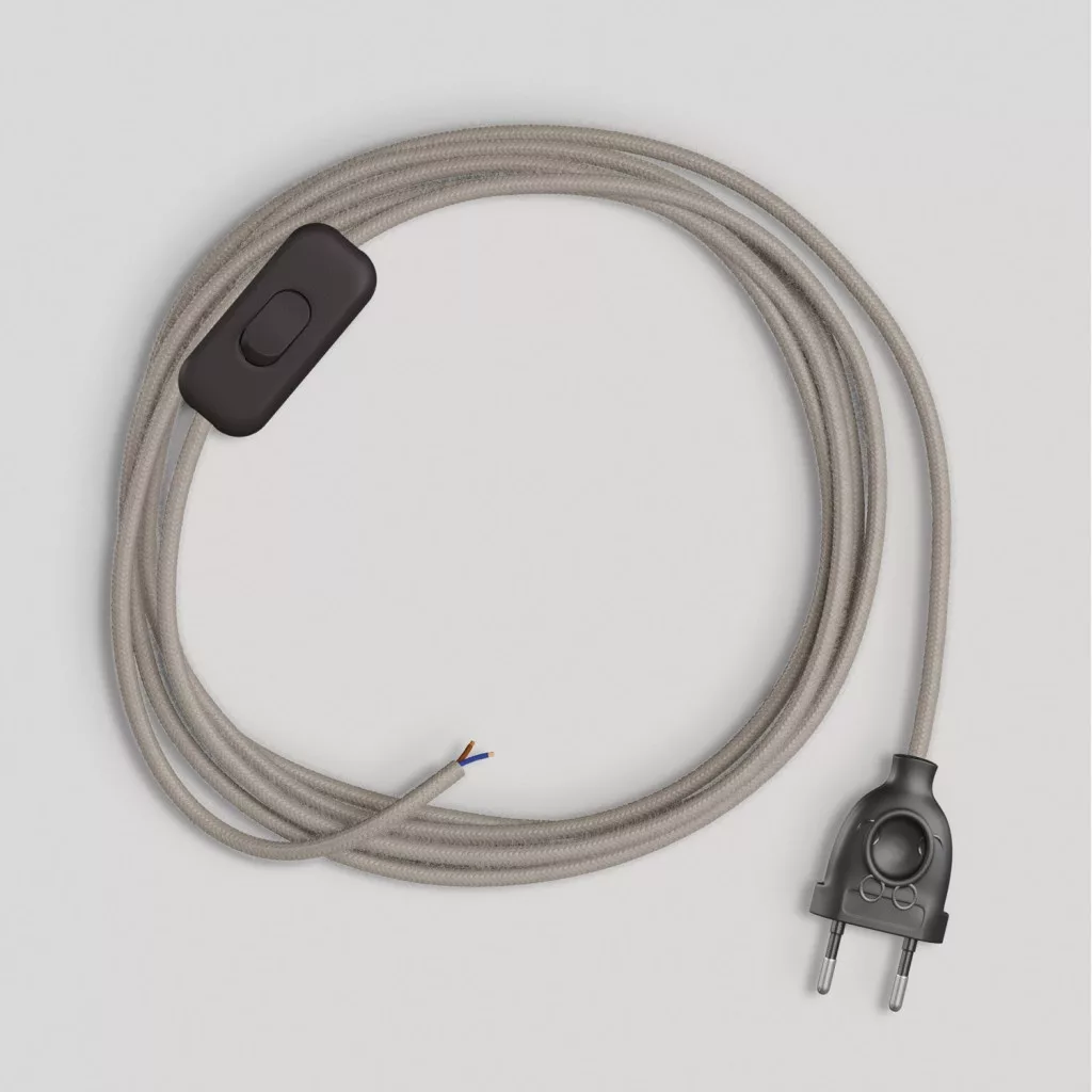 Lamp cord with dove gray cotton cable, 1.80 m