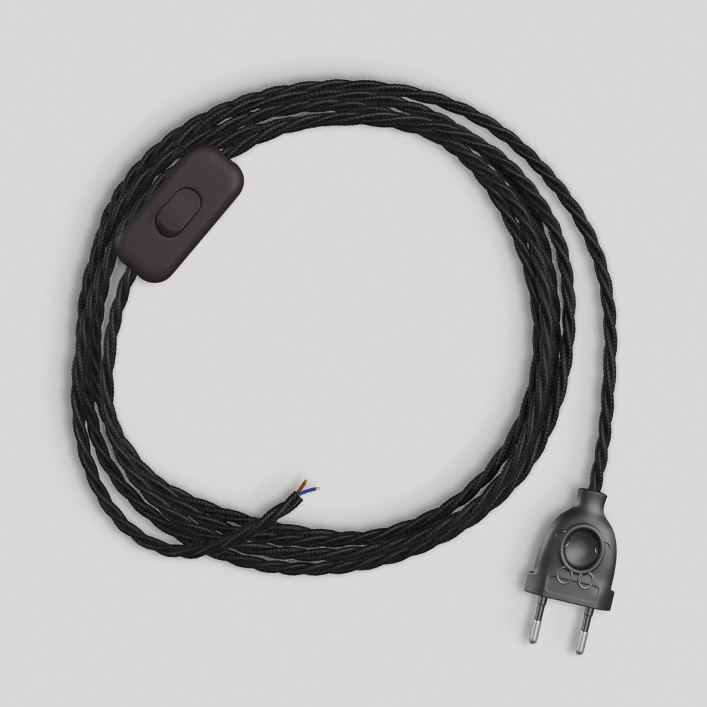 Lamp wiring with black braided cable 1.80 m
