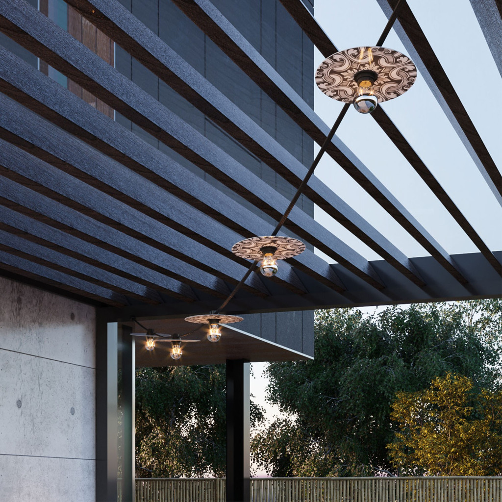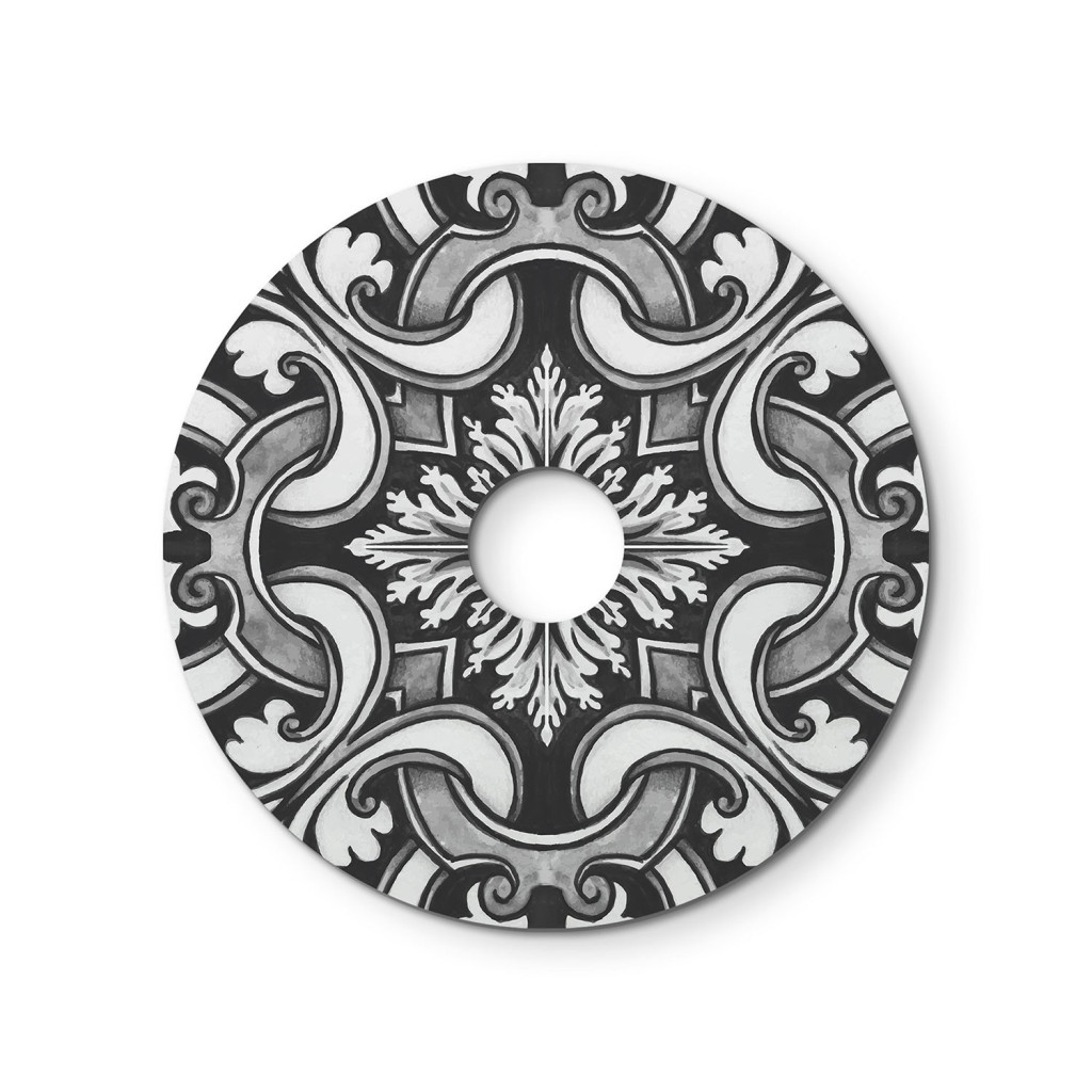 The mini Ellepì flat lampshades are decorated on one side and white on the other.