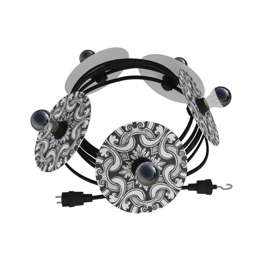 Maioliche' String Light Lumet system from 7.5 m, with fabric cable, 5 lamp holders and lampshades, hook and black plug