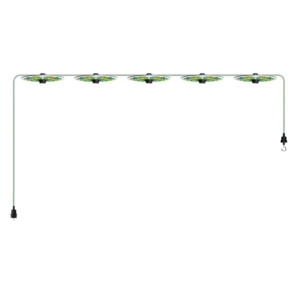 Maioliche' String Light Lumet system from 7.5 m, with fabric cable, 5 lamp holders and lampshades, hook and black plug