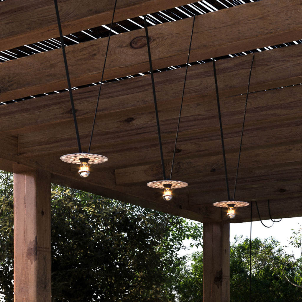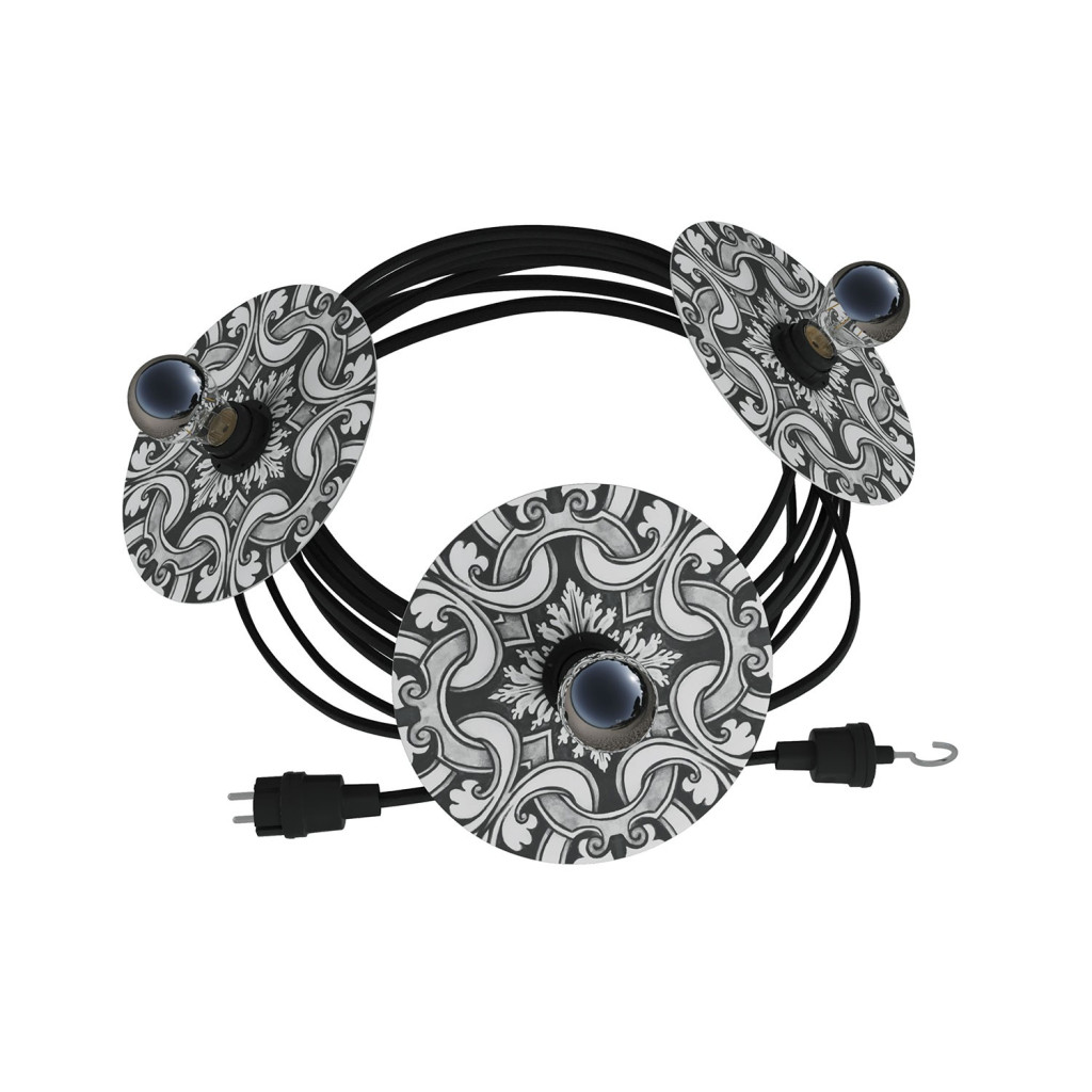 Maioliche chain lighting Lumet system from 10 m, with fabric cable, 3 lamp holders and lamp shades, with hook and black plug