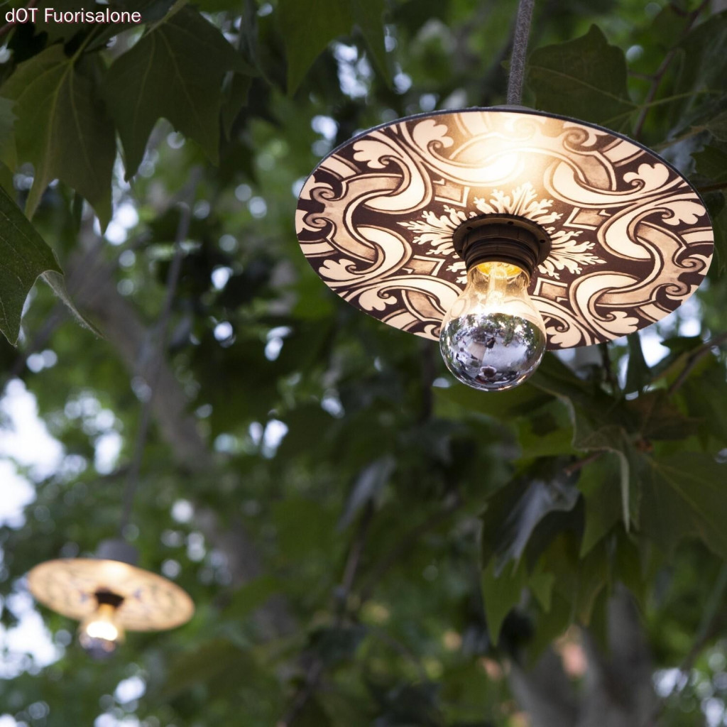 The mini Ellepì flat lampshades are decorated on one side and white on the other.