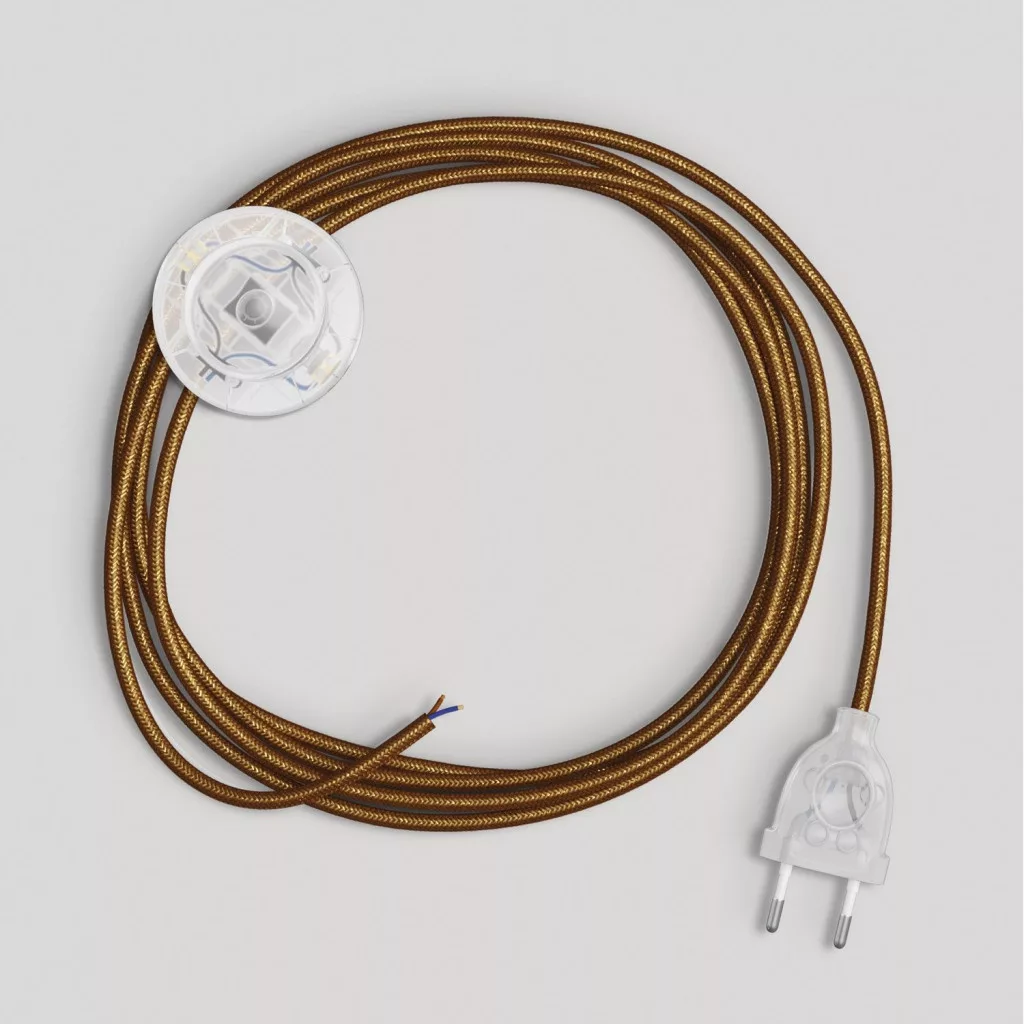 Lamp cord with polished and shiny copper cable, 3 m