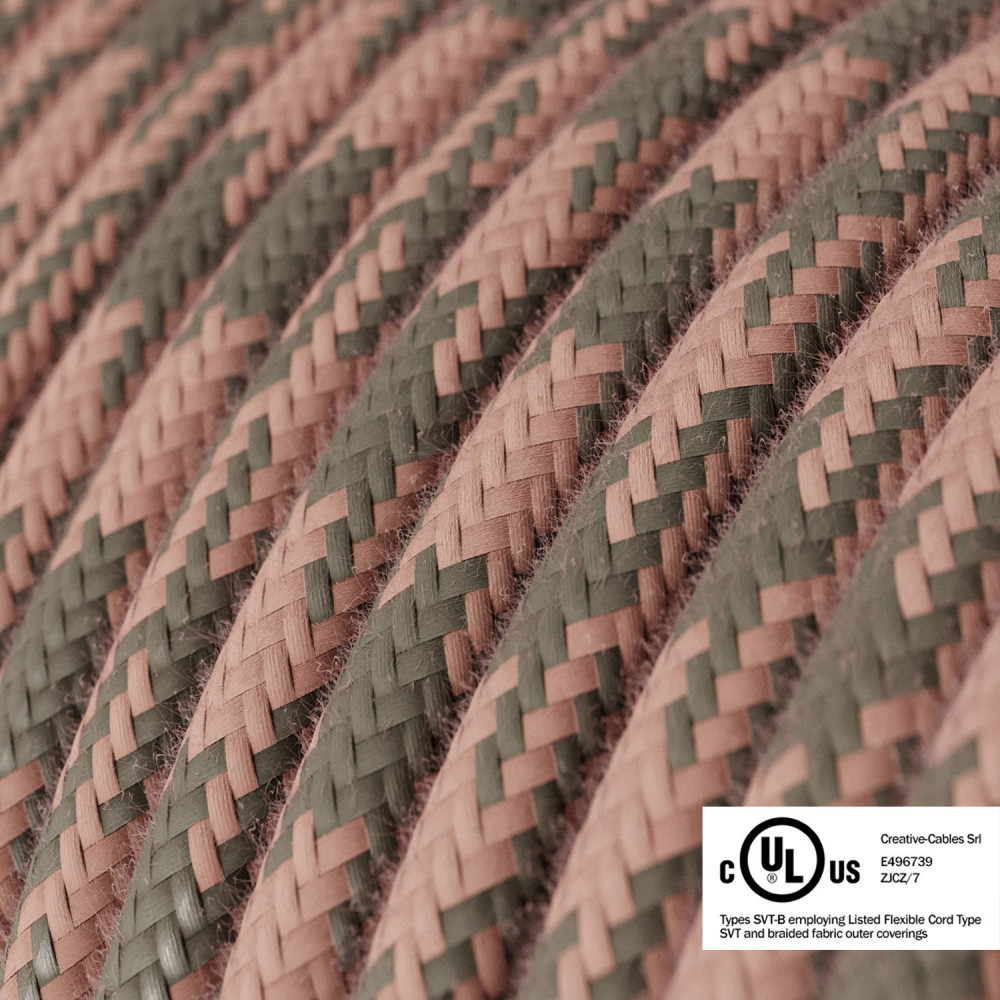 In this cable, the vivid yet subtle shade of Ancient Pink contrasts perfectly with the gray. The result is an elegant shade with a classic feel, perfect for a vintage, worn-in, elegant setting. Our two-tone round cables are available in cotton or rayon. The new patterns we present combine warmth and bright colors with neutral tones, which, with their natural cotton coating, make them perfect cables for modern settings rich in contrast. vibrant colors with neutral tones, which, combined with a natural cotton coating, make them the perfect cables for modern settings rich in contrast. UL Listed: E496739