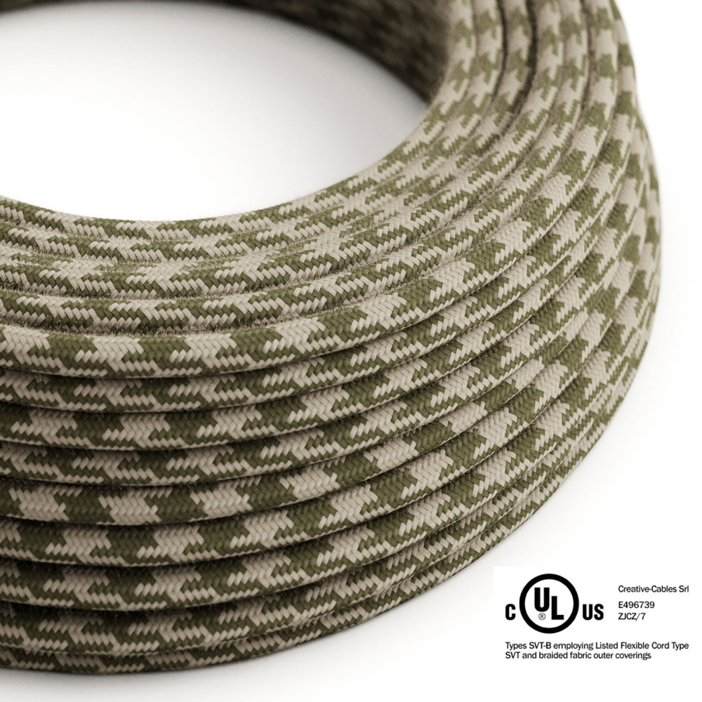 Thyme Green is a subtle, delicate shade that pairs well with natural and light colors: we've combined it with all of our Dove-colored threads. The cotton coating and these two colors make this cable the perfect choice for country-themed homes where natural wood tones dominate. Our two-color round cables are available in cotton or rayon. Our new designs combine warm, vibrant colors with neutral tones to create the perfect cables for modern, contrast-rich settings with a natural cotton cover. UL listing: E496739
