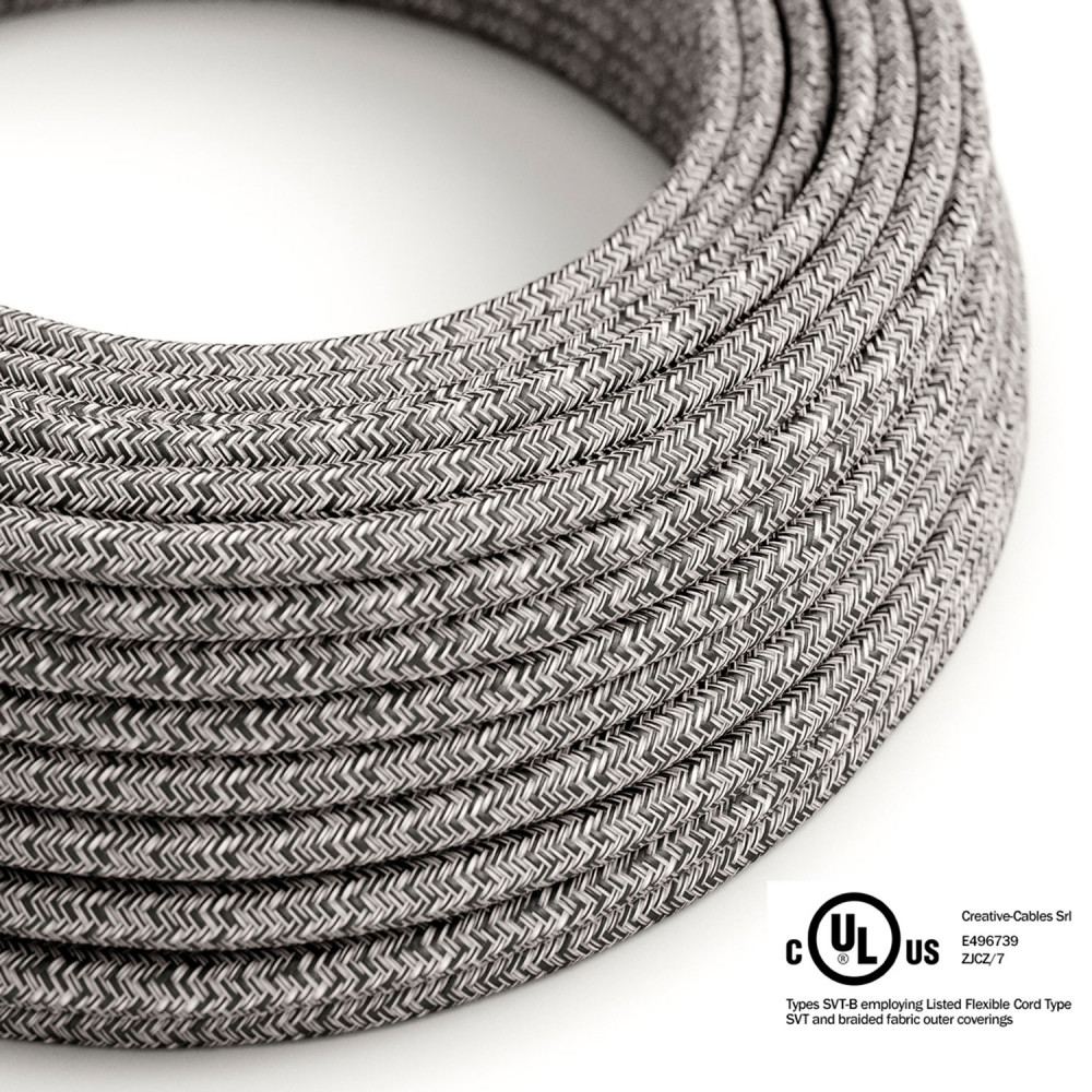 Round electrical cable 150 ft (45.72 m) reel RS81 shiny black onyx cotton and natural linen - UL listed