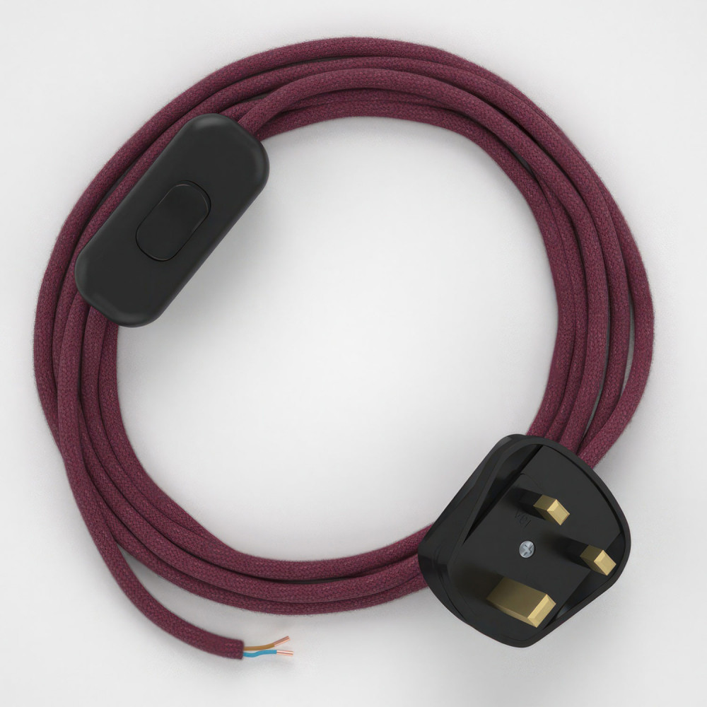 Give your table lamp a new look with the RC32 Burgundy Cotton Round fabric cable, complete with switch and plug. Creative Cables electrical wiring is made in Italy. The components, 100% made in Italy, guarantee perfect quality and safety.