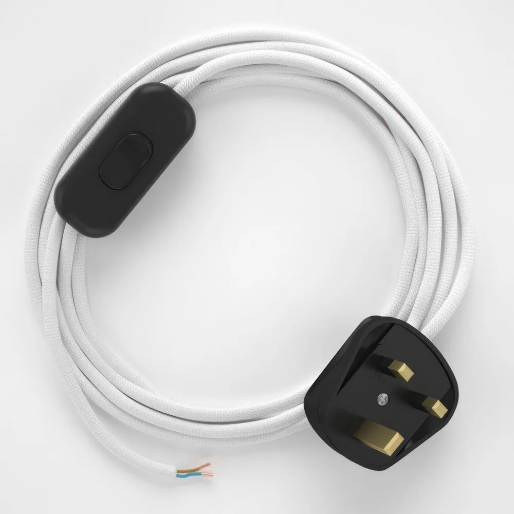 Give your table lamp a new look with the RM01 White Rayon Round fabric cable, complete with switch and plug.
