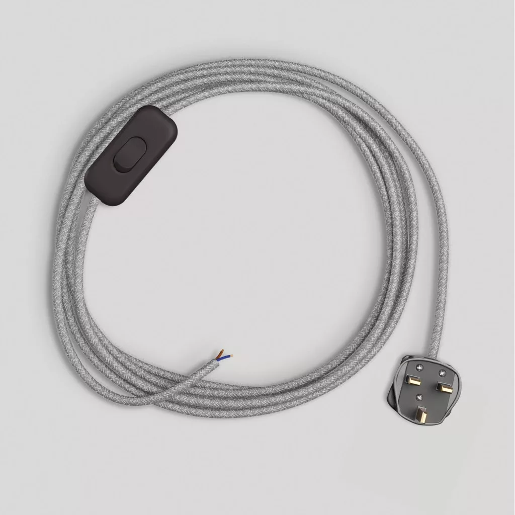 Lamp cord with gray linen cable, 1.80 m