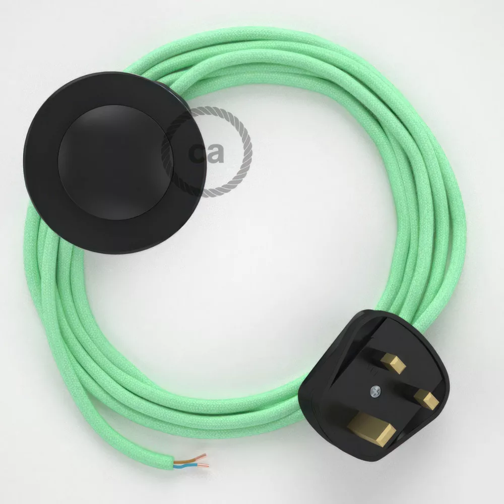 Give your floor lamp a new look with the RC34 Milk and Mint Cotton Round fabric cable, complete with switch and plug. Creative Cables electrical wiring bases are made in Italy from 100% Italian-made components to guarantee quality and safety. It is 300 cm long and fits perfectly with any floor lamp. Made in Italy with 100% Italian components to guarantee quality and safety.