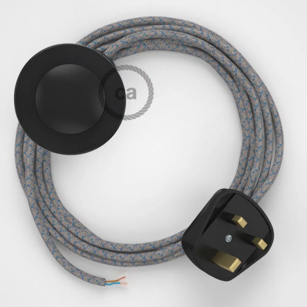 Give your floor lamp a new look with the RD65 Blue Steward diamond cotton and natural linen round fabric cable, complete with switch and plug.