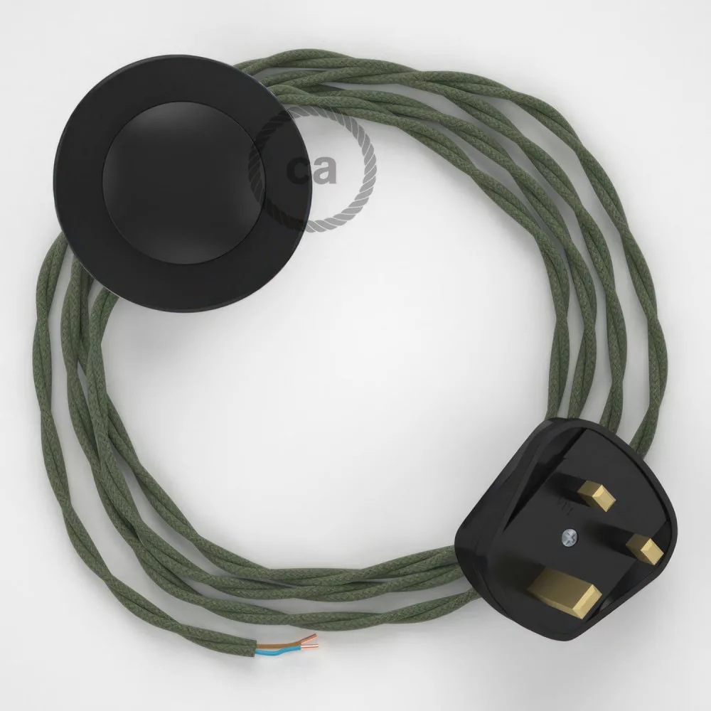 Give your floor lamp a new look with the TC63 Green Grey Cotton Twisted fabric cable, complete with switch and plug. Creative Cables electrical cord bases are 100% made in Italy to guarantee quality and safety.