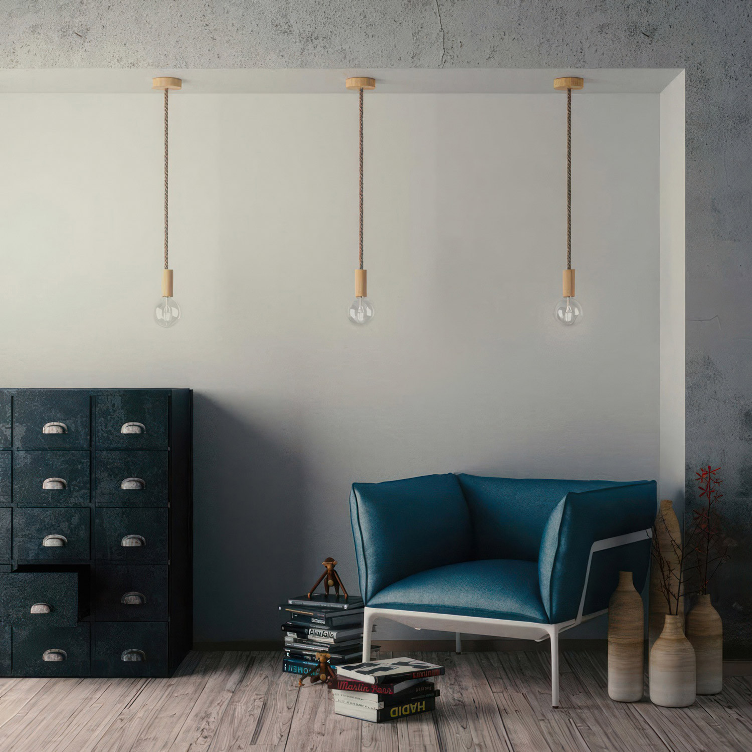XL electrical cable, electrical wire 3x0.75. Rough jute fabric cover. Diameter 16 mm.